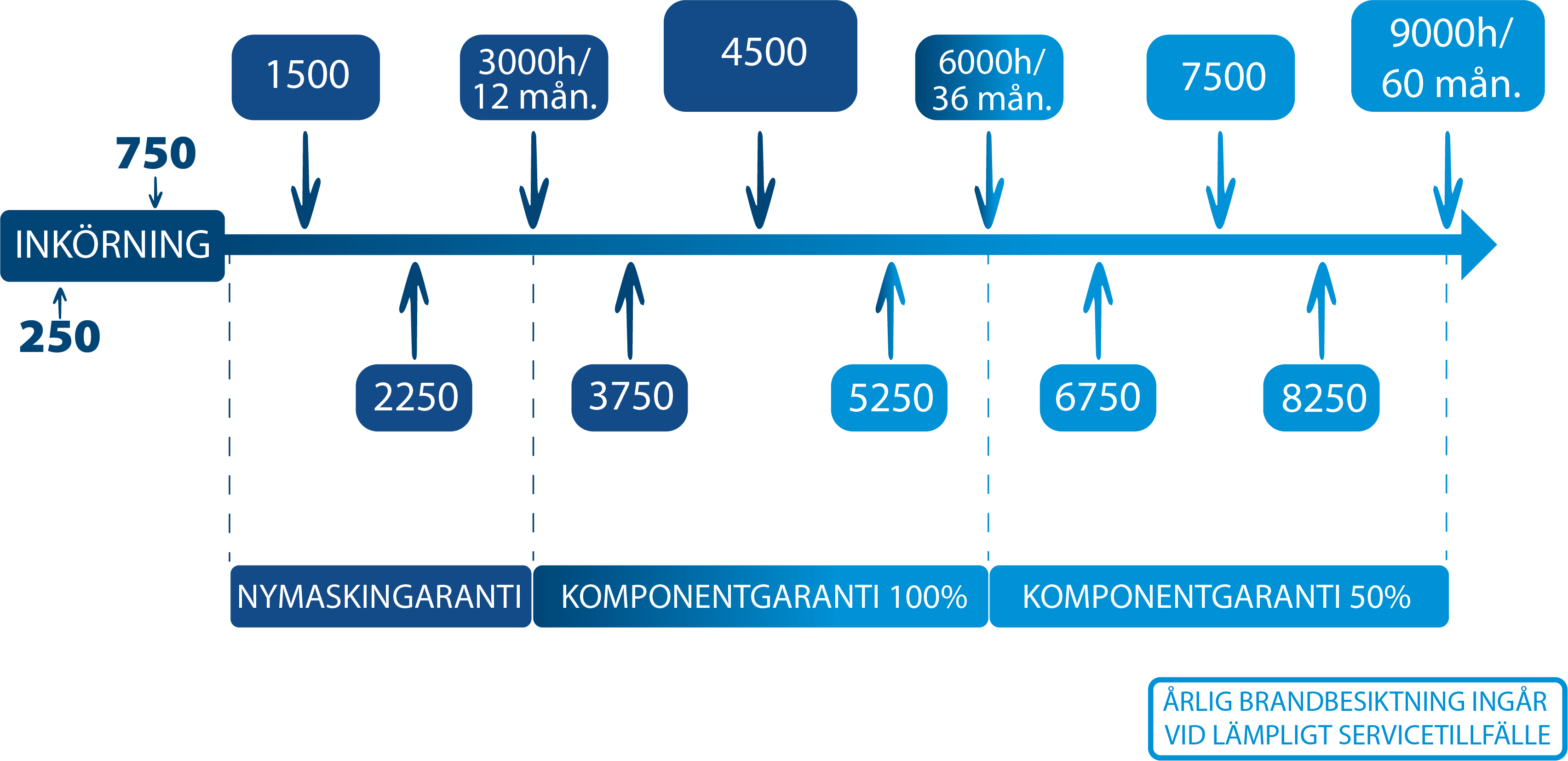 *9000 timmar eller 60 mån, det som inträffar först.